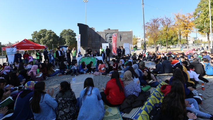 <p style="font-weight: 400;">Büyükşehir Belediyesi Gençlik ve Spor Hizmetleri Daire Başkanlığı’nca 15 Temmuz Demokrasi Meydanı’ndaki etkinliğe; 300 ilkokul ve ortaokul öğrencisi, kitaplarını şehir merkezinde hep birlikte okudu.</p>