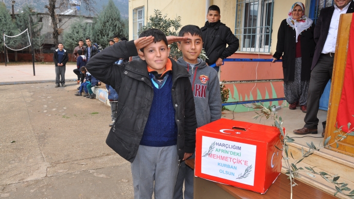 <p>Yunus Emre İlk ve Ortaokulu öğrencileri, Afrin'de Zeytin Dalı Harekatı'nı yürüten kahraman Mehmetçik'e destek olmak amacıyla yardım kampanyası başlattı. Bir günlük okul harçlıklarını kampanya kapsamında bağışlayan toplam 523 öğrenciye, 26 öğretmen ve 5 veli de destek oldu. "Harçlığım Afrin'deki Mehmetçiğe helal olsun" sloganıyla başlatılan kampanya şehitler için okunan Kur'an-ı Kerim ve Mehmetçik için yapılan dua ile başladı. </p>