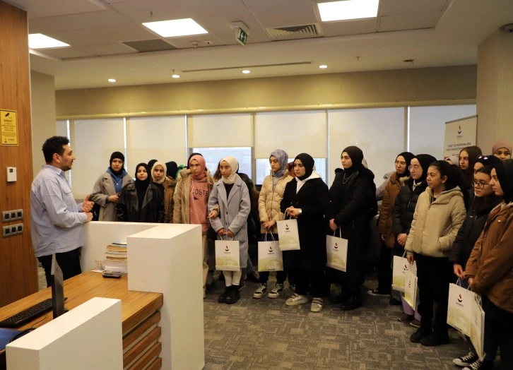SANKO Üniversitesi kütüphanesini de gezme fırsatı bulan öğrencilere, Kütüphane Müdürü Fatih Furkan Gebel, kütüphane hakkında bilgilendirme yaptı.