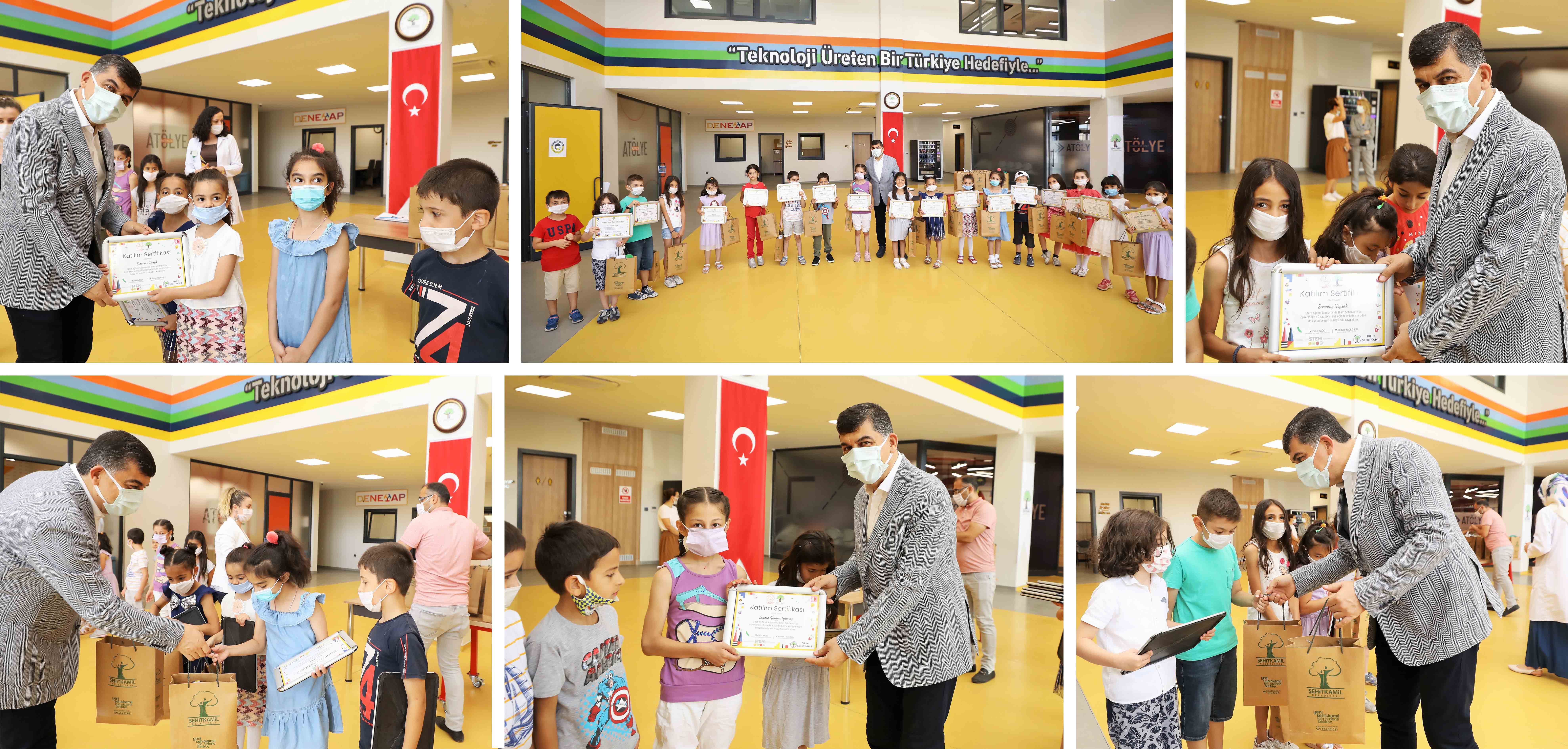 <p style="text-align: justify;">Milli Eğitim Bakanlığı tarafından eğitimde fırsat adaletini sağlamak, okullar arasındaki başarı ve imkan farklılıklarını azaltmak, Covid-19 salgını sürecinde gerçekleştirilen seyreltilmiş, uzaktan eğitim faaliyetlerinin sona erdiği yaz tatili döneminde çocuklarımızın fiziksel, sosyal-duygusal ve akademik gelişimlerini bilimsel, sosyal, kültürel ve sportif eğitim faaliyetleri ile desteklemek amacıyla ‘Telafide Ben De Varım’ programı hazırlandı. Bu kapsamda Şehitkamil Belediyesi bünyesinde hizmet sunan Bilim Şehitkamil’de başlatılan eğitimlere öğrenciler, yoğun ilgi gösterdiler. Pandemi kurallarına uygun şekilde verilen eğitimler sonunda katılımcı öğrencilere sertifika veriliyor.</p>