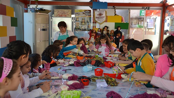 <p>“Çocuk Dostu” Büyükşehir Belediyesi, Oyun ve OyuncakMüzesi’nde sömestir tatili boyunca çocukları ustalarla buluşturarak “Usta-Çırak Atölyede” etkinliği düzenledi. Çocukların oyuncak ustalarıyla kendi oyuncaklarını üretmesi sağlandı. Bez Bebek Atölyesi’nde eğitmen gözetiminde her çocuk, kendi bez bebeğini yaparak bebeklerine birbirinden güzel isimler verdi. Atölyede beş günde 400 çocuğa bez bebek yaptırıldı.</p>