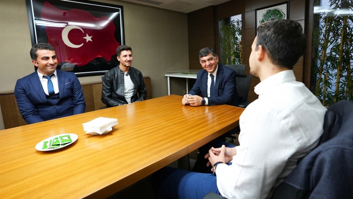 <p>Başkan Fadıloğlu’nu makamında ziyaret eden Ozan Bayraz ile Osman Yıldırım, sağlanan imkanlar dolayısıyla Başkan Fadıloğlu’na teşekkür ettiler. Eğitim alanına yapılan yatırımlara yenilerini eklemek adına yoğun bir mesai ile çalışmalarını sürdürdüklerini belirten Başkan Rıdvan Fadıloğlu, eğitimin her dalına ve her yaş gurubuna yönelik sağlanan olanakları arttırarak devam ettireceklerini söyledi.</p>
