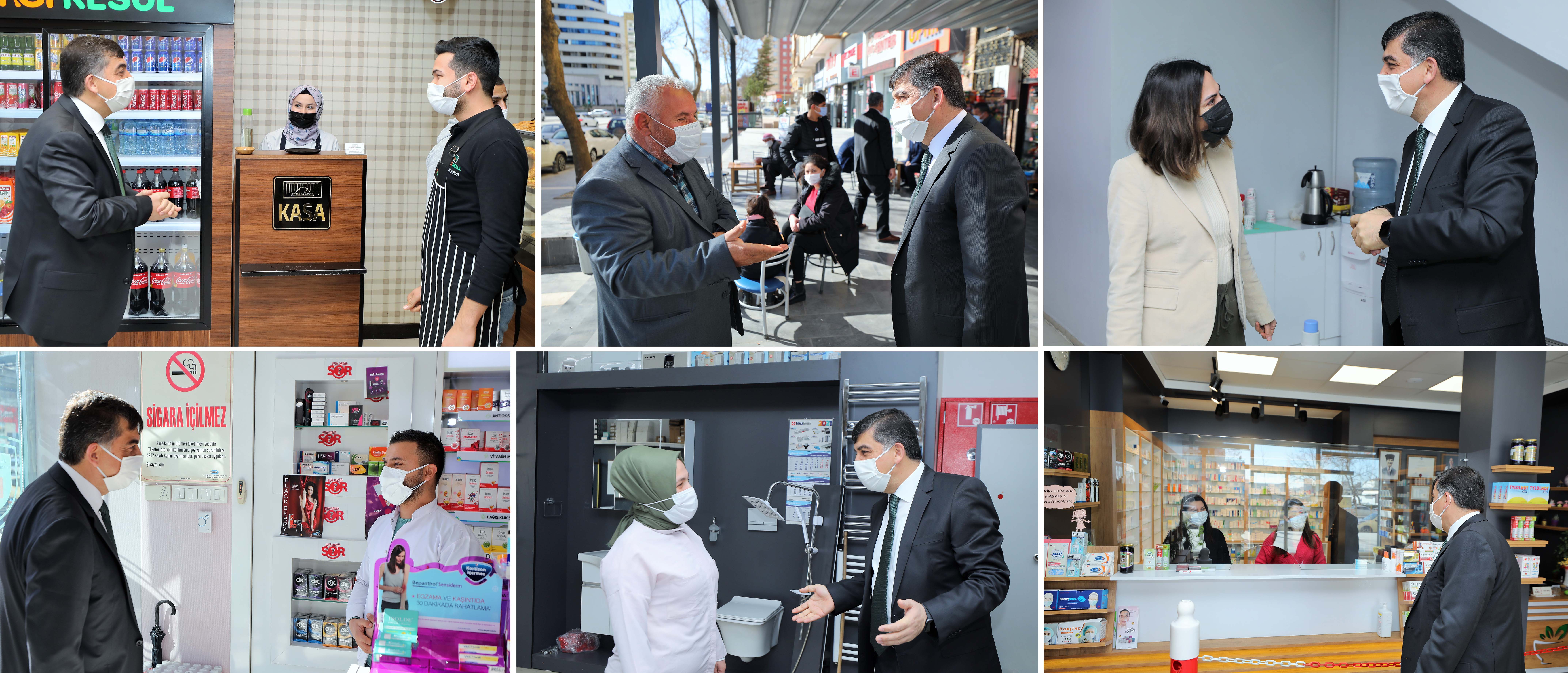 <p style="text-align: justify;">Esnafın taleplerini dinleyen Başkan Rıdvan Fadıloğlu, pandemi kuralları kapsamında maske, temizlik ve sosyal mesafe kurallarına dikkat edilmesi uyarısında bulundu.</p>
