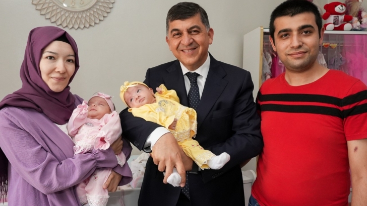 <p align="center"><strong>BAŞKAN FADILOĞLU, İKİZ BEBEKLERE “MERHABA” DEDİ</strong></p>