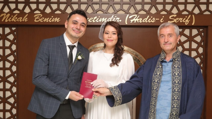 <p style="font-weight: 400;">Son yıllarda Türkiye'nin en çok nikah kıyılan ilçesi olan Şahinbey Belediyesi’nde nikah işlemleri tüm hızıyla devam ediyor. Şahinbey Belediye Başkanı Mehmet Tahmazoğlu, Şahinbey Belediyesi Evlendirme Memurluğu’nda nikah kıymak için gelen çiftleri ziyaret edip hayırlı olsun temennisinde bulunarak, çiftlerin nikahını kıydı.</p>