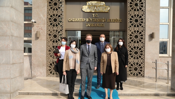 <p style="font-weight: 400; text-align: justify;">AB Türkiye Delegasyonu Başkanı Nikolaus Meyer-Landrut, Büyükşehir Belediye Başkanı Fatma Şahin’i makamında ziyaret etti. Suriye’de meydana gelen iç savaş nedeniyle bölgede önemli merkez olan Gaziantep’te bir dizi incelemeler ve istişareler yapmak amacıyla bulunan Büyükelçi Landrut, Türkiye’nin mülteciler konusunda sergilediği tavrın takdir edildiğini belirterek, “Gaziantep'in mülteciler için önemli bir merkez. Bu nedenle şehirle hali hazırda bulunan temaslar güçlendirilerek iş birliği açısında yeni çalışmalar yapılmalı” dedi. Başkan Fatma Şahin’se, çocuk hakları, kadın hakları, insan hakları alanlarında çok özel çalışmalar yaptıklarını hatırlatarak, “Birçok alanda Gaziantep modeli oluşturduk. Biz iş birliği anlamında ve istişare için konuşmaya hazırız” diyerek karşılık verdi.</p>