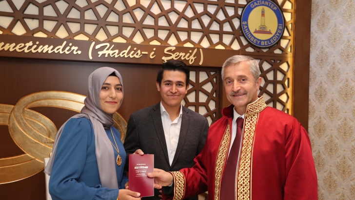 <p style="font-weight: 400;">Son yıllarda Türkiye'nin en çok nikah kıyılan ilçesi olan Şahinbey Belediyesi’nde nikah işlemleri tüm hızıyla devam ediyor. Şahinbey Belediye Başkanı Mehmet Tahmazoğlu, Şahinbey Belediyesi Evlendirme Memurluğu’nda nikah kıymak için gelen çiftleri ziyaret edip hayırlı olsun temennisinde bulunarak çiftlerin nikahını kıydı.</p> <p style="font-weight: 400;">7.340 NİKAH KIYILDI</p> <p style="font-weight: 400;">Şahinbey Belediye Başkanı Mehmet Tahmazoğlu, patenti Şahinbey Belediyesi’ne ait olan Evlilik Okulu’na ilginin her geçen gün arttığını belirterek “Şahinbey Belediyesi olarak her yıl en fazla nikah kıyan belediye ve en fazla çocuğun dünyaya geldiği ilçe durumundayız. En fazla nikah kıyan belediye ünvanımızı bu yılda devam ettirmek istiyoruz. Şu ana kadar 7.340 nikah akdini gerçekleştirdik. Evlenen tüm çiftlerimize iki cihan saadeti diliyorum. Aynı zamanda Evlilik Okulu projemiz de devam ediyor ve Evlilik Okulumuza her geçen gün ilgi ve alaka daha da artıyor. Şu ana kadar 30.477 çiftimize bu alanda eğitim verdik. Bu eğitimlerin katılımcı sayılarını artırarak devam ettiriyoruz. Düğün hediyesi olarakta yeni evlenecek olan çiftlerimize otomatik çamaşır makinası hediye ediyoruz” dedi.</p> <p style="font-weight: 400;">ÇİFTLERİMİZİ UMREYE GÖNDERİYORUZ</p> <p style="font-weight: 400;">Başkan Mehmet Tahmazoğlu, toplumun çekirdek yapısının aile olduğunu belirterek “Ayrıca Evlilik Okuluna katılan her ay bir çiftimizi kurayla Umre’ye gönderiyoruz. Amacımız eşler arasındaki diyaloğu saygıyı muhabbeti arttırarak Mutlu Aile Huzurlu Toplum projesiyle huzurlu bir toplum oluşturmak istiyoruz. Çünkü bizim toplumumuzun çekirdek yapısı ailedir. Aileyi güçlü tutarsak toplumuda güçlü tutmuş olacağız” dedi.</p> <p style="font-weight: 400;"> </p>