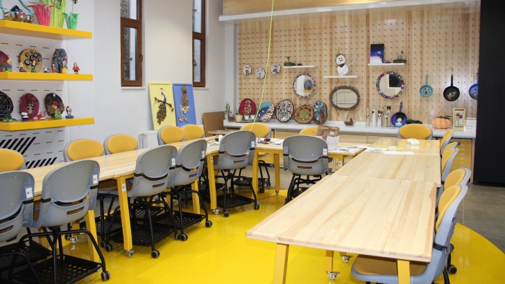 <p style="font-weight: 400; text-align: justify;">Tasarım Atölyesi, öğrencilerin kendilerini keşfetmesini, duygu ve düşüncelerini ifade edecek bir yol bulmasına olanak sağlarken atölyelerde; resim, seramik boyama, dokuma, kanaviçe, etamin, epoksi takı, ebru, tezhip, minyatür, filografi, keçe, cam boyama, origami, ahşap boyama, kumaş boyama, taş boyama, mandala, afiş tasarım, kalemişi, kuru çiçek, tel bebek, makrome ve kaligrafi, ahşap tasarım gibi farklı sanat dallarına ait çalışmalar gerçekleştiriliyor.</p>