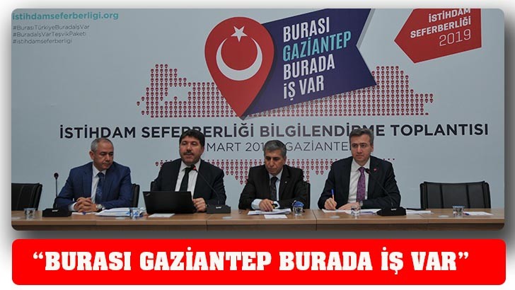 <p style="font-weight: 400;">“Burası Türkiye Burada İş Var” sloganıyla başlatılan Yeni İstihdam Seferberliği’nin içeriğiyle ilgili Gaziantep Sanayi Odası tarafından GSO Mesleki Eğitim Merkezi’nde, “Burası Gaziantep Burada İş Var” başlığı altında bilgilendirme toplantısı gerçekleştirildi. Programa Gaziantepli sanayici ve iş çevreleri yoğun ilgi gösterdi. </p>