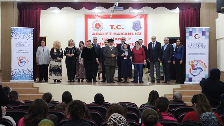 <p>Gaziantep Büyükşehir Belediyesi ile Gaziantep Cezaevi Müdürlüğü tarafından yürütülen sosyal farkındalık etkinliği kapsamında “İyi çocuk, olgun birey, umutlu kadın, mutlu toplumlar” sloganıyla Engelliler Daire Başkanlığına bağlı Aktif Yaşam ve Eğitim Merkezi 65 yaş üstü üyelerinden oluşan tiyatro ekibi, tutuklu ve hükümlüler için “İç Güveysinden Hallice” isimli tiyatro gösterisi sundu. Gösteri, E tipi, H tipi ve Açık Cezaevi’ndeki 300’e aşkın tutuklu ve hükümlülere sergilendi. Hapishaneyi bir an olsun unutan tutuklu ve hükümlüler, arkadaşlarıyla birlikte keyifli dakikalar yaşadı.</p>