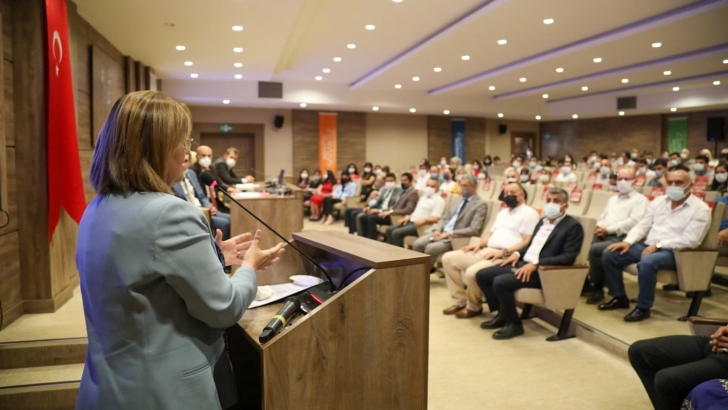 <p style="font-weight: 400; text-align: justify;">Çetin Emeç Salonu’nda organize edilen toplantıda konuşan Büyükşehir Belediye Başkanı Fatma Şahin, “Çalışanlarımızı çok seviyoruz ve güveniyoruz. Yeni yaptığımız sosyal destek sistemi ile Türkiye’de örnek teşkil ediyoruz. Bizi OECD’de şampiyonluğa götüren çalışmalar içerisinde ekonomiyi ekolojiye dönüştürmek ve kapsayıcı olmak yani sosyal belediyecilik önemli etkenler arasında yer alıyordu. Bunun yanı sıra yeşil ekonomi çok mühim bir meseleydi. Toprağı, suyu, havayı korumak. Bununla birlikte bisiklet ve bisiklet yolu da ayrı bir öneme sahipti. Önce biz örnek olalım diye yola çıkıyoruz. Yurt dışında bir bürokrat bisikletle işe geldi, gitti diye herkes övgüler yağdırıyor. Bizim ne farkımız var. Ciğerimizi korumamız için sigara kullanımını da tamamen bırakmamız gerekiyor. Bunun içinde teşvik ediyoruz personelimizi. Bizim, milli ve manevi değerlerimizi koruyarak kuşaklar arası sürdürülebilir kılmamız lazım. Biz her birimiz köprüyüz. Bu köprü geleceğe taşınırsa ehemmiyetini sürdürür. Kurban bayramında kurbanını alacak kadar bir sosyal destek verelim istedik. Burada da bir ilki gerçekleştirmenin mutluluğunu taşıyoruz. Kurban teslimiyet ve sabırdır, inançtır. Bu ruhu iyi anlatmamız gerekiyor. Kurban Bayramının derinlerine inerek yeni neslimizi bilgilendirmek ve bilinçlendirmek elzem. Kurban bizden destek sizden diyorum. Rabbim bayramı bayram tadıyla geçirmeyi nasip etsin. Siz çalışanlarımızdan çok şey bekliyoruz. Sizlere çok ihtiyacımız var. Birbirimizi severek çalışacağız. En önemli şey sevgi. Seversen sevilirsin” diye konuştu.</p>