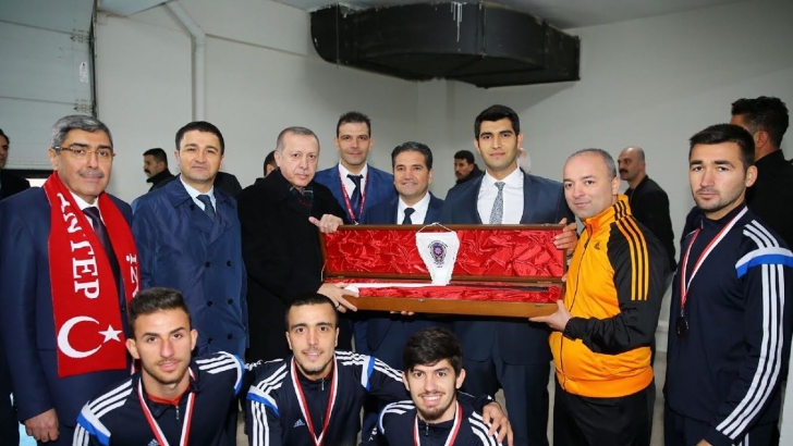 <p style="font-weight: 400;">Cumhurbaşkanı Recep Tayyip Erdoğan’ın Gaziantep ziyaretinde proğramına katılan Başbakan Yardımcısı Mehmet Şimşek, Adalet Bakanı Abdülhamit Gül, Ak Parti Genel Başkan Yardımcısı Mahir Ünal, Ak Parti Gaziantep Milletvekilleri Şamil Tayyar, Ahmet Uzer, Nejat Koçer, Mehmet Erdoğan, Eski Devlet Bakanı Kürşat Tüzmen, Gaziantep Büyükşehir Belediye Başkanı Fatma Şahin, Ak Parti Gaziantep İl Başkanı Mehmet Eyüp Özkeçeci, Yönetim Kurulu Üyesi Nur Mirkelam, Şehitkamil Belediye Başkanı Rıdvan Fadıloğlu, Gaziantep Eski Milletvekili Mehmet Sarı ve karşılama törenine katılan çok sayıda sanayici, iş adamı, siyasetçi ve protokol üyesi Şampiyon takımı kutlarken Kulüp Başkanı Mehmet Kaplan ve Teknik Direktör Yusuf Kasım’a başarılar dilediler.</p>