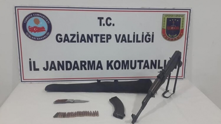<p>Gaziantep’in İslahiye İlçesinde bir düğünde kaleşnikof piyade tüfeği ile havaya ateş açan R.A. isimli şahıs, 27 ACP 656 plakalı araç ile kaçarken ihbar üzerine harekete geçen İl Jandarma ve İslahiye ilçe Jandarma Komutanlığı ekipleri tarafından durduruldu. Şahsı gözaltına alan ekipler, araçta yaptığı aramada ise tüfek ile birlikte şarjör ve bu tüfeğe ait 23 adet fişek ile sustalı bıçak ele geçirdi. Şahsın evinde yapılan aramada ise kuru sıkıdan bozma tabanca, şarjörü ve kuru sıkı tabanca bulundu.<br />R.A, sevk edildiği nöbetçi Sulh Ceza Hakimliğince tutuklanarak cezaevine gönderildi.</p>