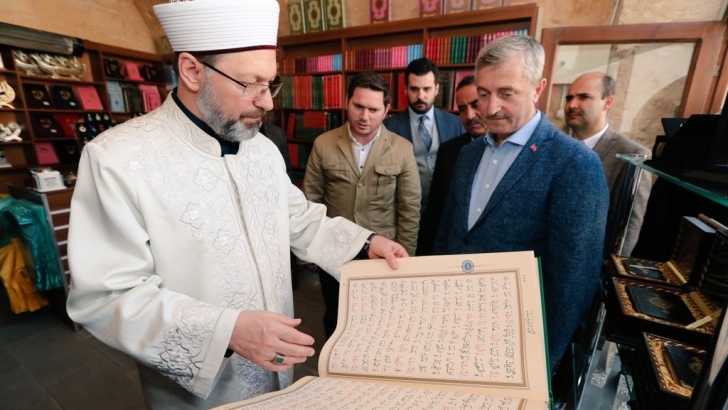 <p>Geçtiğimiz günler içerisinde bir dizi ziyaretleri için Gaziantep’e gelen Diyanet İşleri Başkanı Prof. Dr. Ali Erbaş Şahinbey Belediyesi tarafından restore edilen ve Sahaflar Çarşısı olarak vatandaşın hizmetine sunulan Mecidiye Han’ı Şahinbey Belediye Başkanı Mehmet Tahmazoğlu ve Şahinbey İlçe Müftüsü Mahmut Arçaklıoğlu ile birlikte ziyaret edere, esnafla sohbet etti. Mecidiye Han’ın içerisindeki Millet Kıraathanesi’nde ders çalışan öğrencileri ziyaret eden Diyanet İşleri Başkanı Prof. Dr. Ali Erbaş öğrencilere derslerinde başarılar dileyerek, tarihi hanın yapılan başarılı çalışmalar sonrasında yeniden günümüze kazandırılmasının memnuniyet verici olduğunu ifade etti. Daha sonra Şahinbey Milli Mücadele Müzesine geçen Diyanet İşleri Başkanı Erbaş, Gazianteplilerin düşmana karşı vermiş olduğu destansı mücadeleyi yakından görüp inceleme fırsatı buldu.</p>