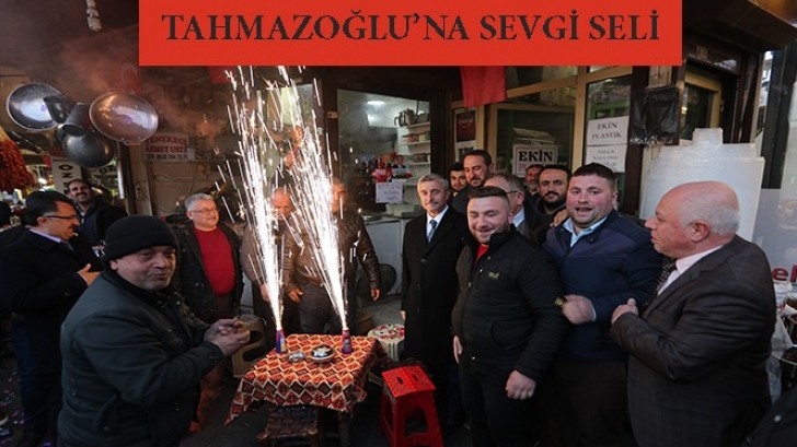 <p>Şahinbey Belediye Başkanı Mehmet Tahmazoğlu, mahalli idareler seçimlerinde<br />kendisine destek veren esnafı ziyaret etti. Başkan Mehmet Tahmazoğlu, Almacı pazarındaki esnaf tarafından türkülerle ve şarkılarla karşılanıp konfetiler patlatıldı.<br />DURMAK YOK YOLA DEVAM<br />Şahinbey Belediye Başkanı Mehmet Tahmazoğlu, vatandaşın çok büyük desteğini<br />aldıklarını belirterek,“31 Mart Mahalli İdareler seçiminde Gaziantep halkı kendine yakışanı yaptı. Üçüncü defa Şahinbey’de bize yola devam dedi. %60’ın üzerinde çok büyük bir destek verdi. Bu anlamda tüm halkımıza ve esnafımıza çok teşekkür ediyorum. Kaldığımız yerden yeniden Bismillah diyerek, yola devam edeceğiz. Rabbim en güzel hizmetleri hep birlikte yapmayı nasip eylesin” dedi.</p>