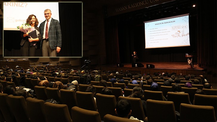 <p>Gökçen Aydın, belirlenen hedeflerin somut ve gerçekçi olmasının önemine dikkat çekerek, "Öğrencilerin gerçekleşmesi mümkün olan hedefler koyarak ilerlemelerinin etkili bir yöntem olacağının altını çizdi. Etkili çalışma yöntemlerini sekiz başlık altında aktaran Yrd. Doç. Dr. Gökçen Aydın, sunum kapsamında Öğrenme stilleri (görsel, işitsel, kinestetik), Hedef Belirleme, Eleştirel Düşünme, Sınava Hazırlık, Etkili Okuma, Ders Kitabı İşaretleme, Etkili Not Alma ve Akademik Yazma konularındaki bilgilerini öğrencilerle paylaştı. Sunumun sonunda öğrencilere katılım belgesi verildi. Soru-cevap şeklinde devam eden program sonunda HKÜ Rektör Yardımcısı Prof. Dr. Yaşar Özbay, Yrd. Doç. Dr. Gökçen Aydın’a teşekkür belgesi ve çiçek takdim etti.</p>
