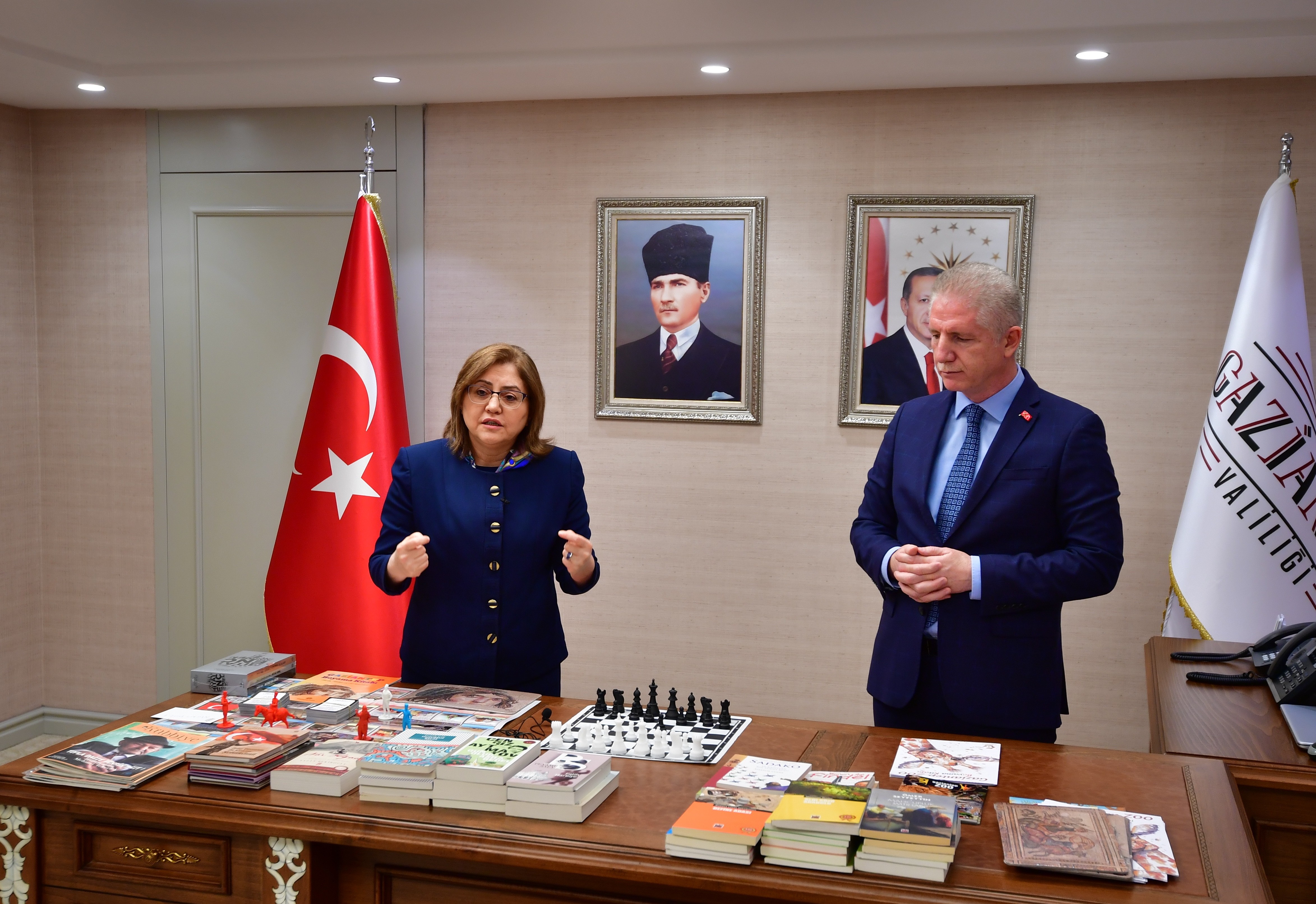 <p>Gaziantep Büyükşehir Belediye Başkanı Fatma Şahin, küresel bir sorunla ulusal mücadele edildiğini söyleyerek, “Panik yok tedbir var diyoruz. Evde kal Türkiye’m evde kal Gaziantep’im diyoruz. Evde hayat var diyoruz. İşte bu başlıklar içerisinde Gaziantep Büyükşehir Belediyesi olarak Sayın Valimin başlatmış olduğu kampanyaya destek için buradayız. Okul öncesinden başlamak üzere boyama kitapları, puzzlar, ilköğretim, ortaokul ve lise kitaplarımız mevcut. Milli Eğitim Bakanlığımızın onayladığı yaklaşık 200 bin kitabımızı çocuklarımızla buluşturuyoruz. ‘Ben Okuyorum Gaziantep Okuyor’ kampanyasını sonuna kadar destekliyoruz. Bizim bir kampanyamız daha var; ‘Spor Kenti Gaziantep’ diyoruz. Evde hayat var diyoruz, evde hayat varı Spor Kenti Gaziantep ile birleştiriyoruz ve her çocuğumuza ailece oturup oynayacağı bir satranç takımı hediye ediyoruz. Satranç takımımız ile birlikte bu kurallara uyan, 14 kurala uyan, bu kitapları okuyan çocuklarımıza da çok güzel bir hediyemiz var” dedi.</p>