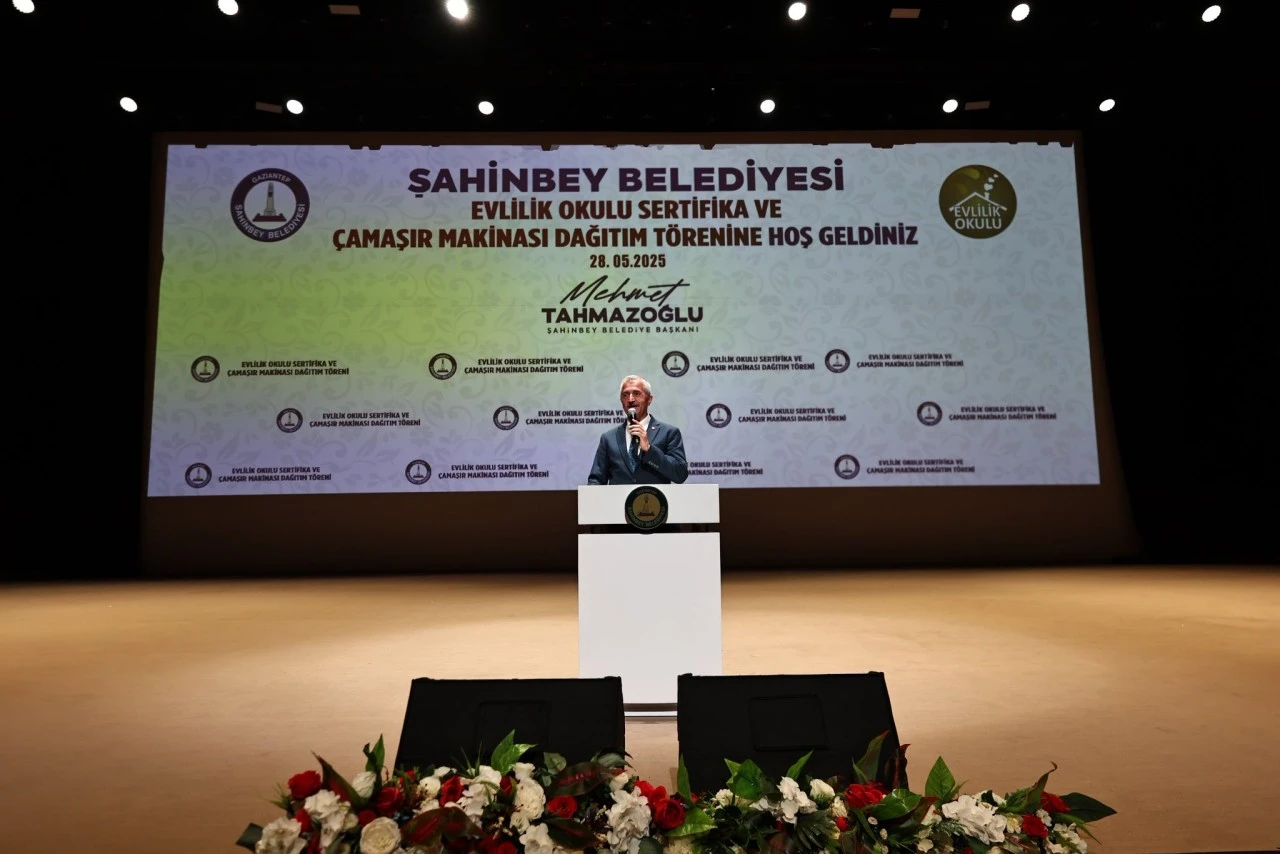 Evlilik Okulu Projesini önemsediklerini ifade eden Şahinbey Belediye Başkanı Mehmet Tahmazoğlu "Allah çiftlerimizi mesut ve bahtiyar eylesin. Şahinbey Belediyesi olarak evlilikte yanınızda olduğumuz gibi çocuklarınız olduğunda da yanınızda olacağız. Göreve geldiğimiz günden bu yana ‘Hoş Geldin Bebek’ projemiz ile evinizdeki ilk ziyaretçiniz Şahinbey Belediyesi olacak. Bebeğinizin bakımı ile ilgili bilgilendirmeler yapılacak. Sonraki yıllarda da ana sınıfından başlayarak eğitimlerinde de onların yanında olacağız. Evlilik insan hayatında çok önemli bir dönüm noktası. İnsana hem dünyasını hem de ahiretini kazandıracak bir müessese. Eşinizle iyi iseniz eviniz cennet hayatı, eşinizle aranız iyi değilse eviniz cehennem hayatına döner. Bu nedenle eşler birbiriyle iyi olmak zorunda. Aile mutlu olursa toplumda huzurlu olur. Bu nedenle elimizden geldiği kadar fedakârlık yaparak aileyi ayakta tutmaya gayret etmemiz gerekiyor. Şahinbey Belediyesi olarak gençlerimizi evliliğe teşvik ediyoruz yeni evlenecek olan çiftlerimize 40 Bin TL nakdi destek sağlıyoruz. Ayrıca Evlilik Okulu’na katılan ve yeni evlenecek olan çiftlerimize çamaşır makinası hediye ediyoruz. Sadece bunlarla da sınırlı kalmayıp maddi imkânı olmayıp evlenmek isteyen çiftlerimize çeyiz seti hediye ediyoruz. Sadece yeni evlenen çiftlerimizi değil çocuk sahibi olan ailelerimizi de destekliyoruz. İlk Çocuğu olan ailelerimize Hoş Geldin Bebek Projemiz kapsamında bebek battaniyesi, ateş ölçer ve anne çantası hediye ediliyor. Ayrıca bu yıl 2. çocuktan itibaren çocuk bezini Şahinbey Belediyesi olarak biz veriyoruz. 2,3,4,5 diye sınırlama yok. Diğer yandan 2. çocuktan itibaren yılda 12 bin TL olmak üzere 3 yıl boyunca nakit desteği veriyoruz. 3. çocuk olursa desteğimiz daha da artıyor. Aylık 5 bin TL’den 1 yılda 60 bin, 3 yılda ise 180 bin TL nakit desteği sağlamış olacağız. 4. çocuk olursa aylık 4 bin yılda 48 bin TL, 3 yılda da 144 bin TL destek vermiş oluyoruz. Şimdiden tüm çiftlerimizi tebrik ediyor, mutluluklar diliyorum” diye konuştu.