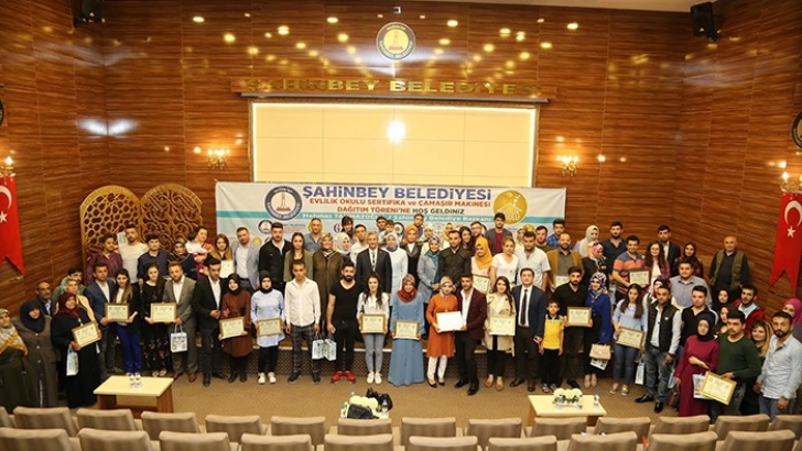 <p style="font-weight: 400;">Şahinbey Belediyesi, 2009 yılında başlattığı projeyi Gaziantep İl Müftülüğü, İl Sağlık Müdürlüğü, İl Emniyet Müdürlüğü, Hasan Kalyoncu Üniversitesi ve Şahinbey Rehberlik Araştırma Merkezi ile bilirlikte yürütüyor. Şahinbey Belediyesi Nikah Salonu’nda düzenlenen sertifika törenine Şahinbey Belediye Başkanı Mehmet Tahmazoğlu, Şahinbey İlçe Müftüsü Musa İmamoğlu, Kişisel Gelişim Uzmanı Münir Arıkan, Başkan Yardımcıları, Kurum Müdürleri ve kursiyerler katıldı.</p>