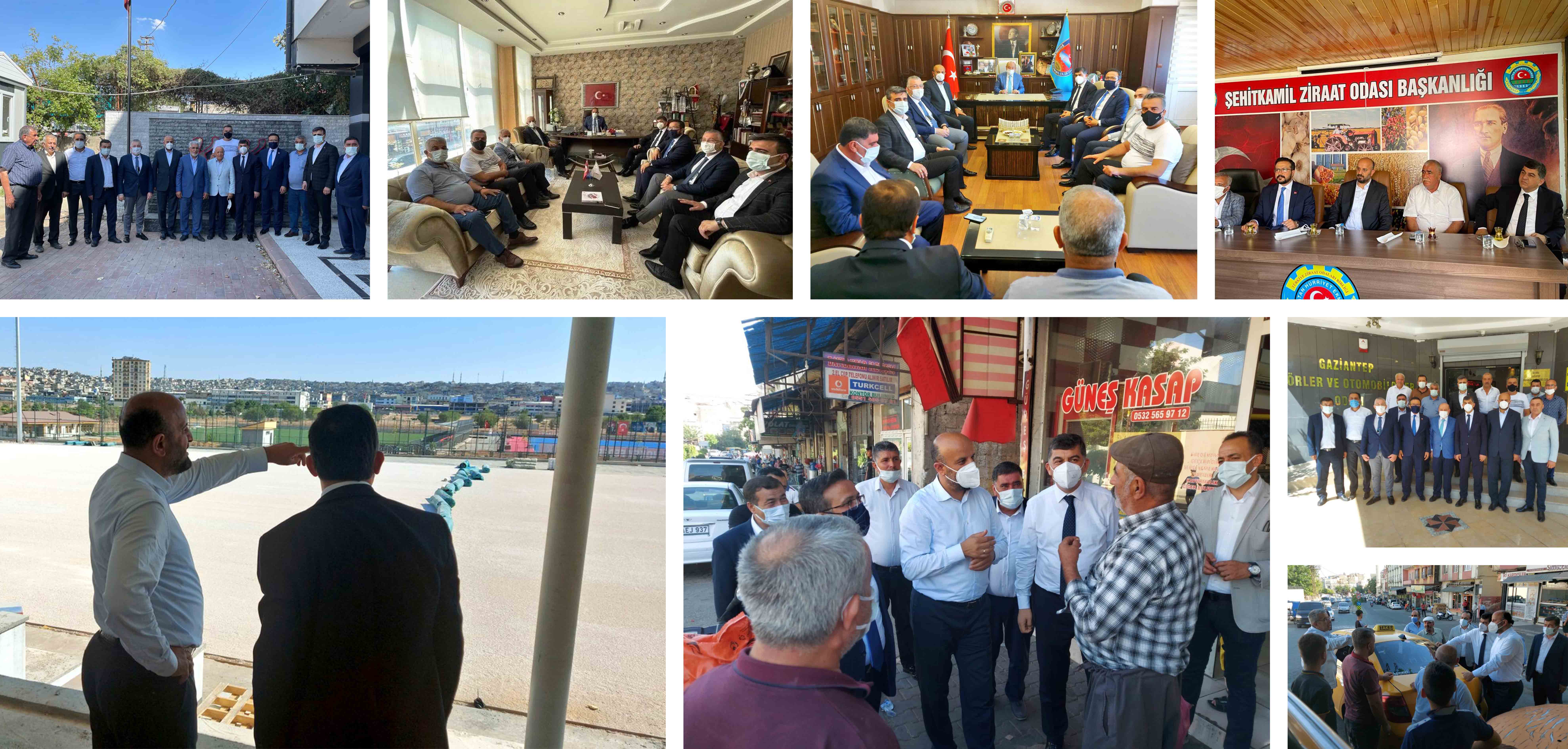 <p style="text-align: justify;">Şehitkamil Belediye Başkanı Rıdvan Fadıloğlu; AK Parti Gaziantep Milletvekili Mehmet Sait Kirazoğlu, Gaziantep Büyükşehir Belediyesi Başkan Vekili Latif Karadağ, AK Parti Şehitkamil İlçe Başkanı Mehmet Yılmaz, AK Parti Gaziantep İl Başkan Yardımcısı Ertuğrul Teymur, Şehitkamil Belediyesi Meclis Üyeleri ve AK Parti Şehitkamil İlçe Teşkilat Üyeleri ile birlikte çeşitli adreslere ziyaretler gerçekleştirdi.</p> <p style="text-align: justify;">İlk ziyaret, Gaziantep Basın Cemiyeti Başkanı Arif Kurt’a yapıldı. Daha sonra Şehitkamil Ziraat Odası Başkanı Cuma Yiğit, Gaziantep Şoförler ve Otomobilciler Odası Başkanı Ünal Akdoğan, Antepfıstığı Sınırlı Sorumlu Kooperatifi Başkanı Hızır Arıkök ziyaret edildi. Ziyaretlerde, talepler ve öneriler dinlendi, görüş alışverişi yapıldı.</p> <p style="text-align: justify;">Sonraki adres, yapımı Şehitkamil Belediyesi tarafından devam ettirilen Çıksorut Stadyumu oldu. Programa katılım sağlayanlara projeyle ilgili bilgiler veren Şehitkamil Belediye Başkanı Rıdvan Fadıloğlu, yapının kısa süre sonra hizmet vereceğini söyledi.</p> <p style="text-align: justify;">Proje incelemesi sonrası Maaşkuyu Caddesi üzerinde hizmet veren esnaf ziyaret edildi. Esnafın taleplerini dinleyen Başkan Fadıloğlu, Milletvekili Kirazoğlu ile beraberlerindeki heyet, son olarak Gören ve Pişkin ailelerine taziye ziyaretinde bulundu.</p>