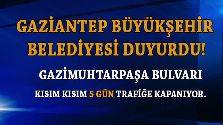 <p style="font-weight: 400;">Gaziantep Büyükşehir Belediyesi asfalt yenileme çalışmaları kapsamında 12–17 Nisan 2019 tarihleri arasında Gazi Muhtarpaşa Bulvarı’nı kısım kısım trafiğe kapanacağını duyurdu.</p> <p style="font-weight: 400;">Yarın saat 23.00’dan itibaren Çetinkaya Kavşağı ile D–400 İpekyolu arasındaki kalan yollarda asfalt yenileme çalışması yapılacak. Çalışmanın 12 Nisan 23.00’den 17 Nisan Çarşamba günü saat 18.00’a kadar devam edeceği belirtildi.</p> <p style="font-weight: 400;">Bu nedenle araç sürücülerinin mağdur olmamaları için alternatif yolları kullanmaları gerekiyor.</p> <p style="font-weight: 400;"> </p>
