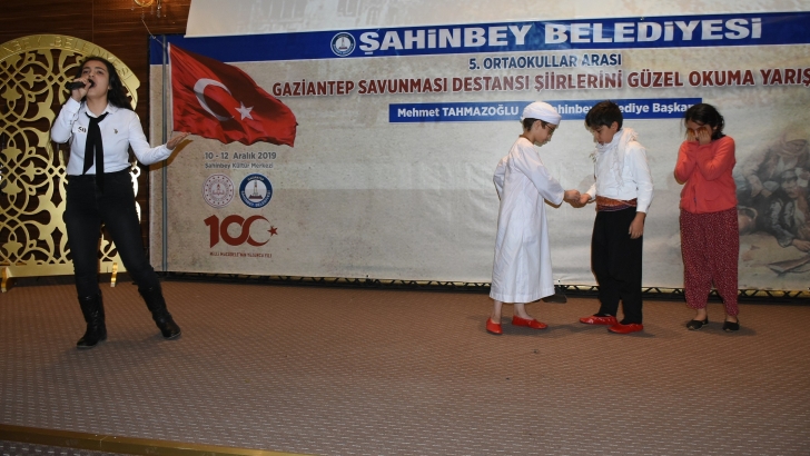 <p>Şahinbey Belediyesi, Kültür Merkezi ve nikah salonunda düzenlenen yarışmada öğrenciler derece elde edebilmek için şiirleri büyük bir itina ve dikkatle okuyarak dinleyicileri etkileyip jüriden puanlarını aldılar. Şahinbey Belediye Başkanı Mehmet Tahmazoğlu, Gaziantep’in kurtuluşunda destansı bir mücadelenin yattığına dikkati çekerek, “25 Aralık Gaziantep’in Kurtuluş Günü münasebetiyle Gaziantep Savunması Destansı Şiirlerini güzel okuma yarışması düzenledik. Bu organizasyona katılan tüm okulları kutluyorum. Önemli olan buraya gelip bu yarışmaya katılmak. Tüm yarışmacılar gönlümüzün birincisidir. İnşallah hepiniz bu yarışmada başarılı olursunuz. Hem bu yarışmada, hem de hayatınızda başarılar diliyorum” dedi. Düzenlenen yarışmaya katılan okul öğrencileri ve eğitimciler Şahinbey Belediyesi’ne teşekkür ederek, “Böyle bir organizasyon düzenlediği için öncelikle Şahinbey Belediyesi’ne çok teşekkür ederiz. Bu tür etkinlikler geçmişte verilen mücadelenin yaşatılması ve gençlere aktarılması için çok önemli” diye konuştu.</p>