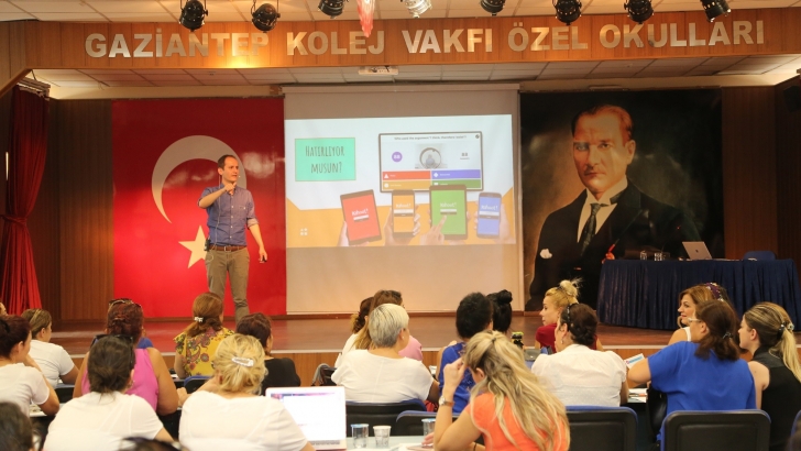 <p style="font-weight: 400;">Kazancı “Öğretme ve Öğrenme Sürecinde Sunum Araçları” ve “Öğrenci Değerlendirme Sürecini Geliştirmek için Teknolojik Araçlardan Faydalanma” konulu eğitim seminerleriyle Gaziantep Kolej Vakfı Özel Okulları öğretmen ve idarecileriyle uygulamalı çalışmalar gerçekleştirdi.</p>
