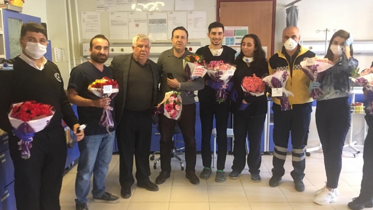 <p style="font-weight: 400;">Gaziantep Çiçekçiler Derneği Başkan Mehmet Aral, Çiçekçiler Derneği Onursal Başkanı Ender Kandemir ve Gaziantep Çiçekçiler Odası 2. Başkanı Cuma Çelik, Abdülkadir Yüksel Devlet Hastanesi, İnayet Topçuoğlu Hastanesi ve Hasırcıoğlu Semt Polikliniğine moral ziyaretinde bulundu. Gaziantepli çiçekçiler, insanların evinden çıkmadığı bir ortamda, her türlü riske rağmen büyük bir özveri ile görevini yerine getiren sağlık personellerine hem teşekkür ettiler, hem de çiçek verdiler.</p>