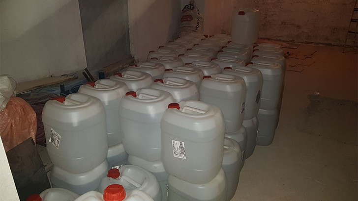 <p>Gaziantep Kaçakçılık ve Organize Suçlarla Mücadele Şube Müdürlüğü, Şahinbey ilçesinde sahte alkol imalatı yapılan bir depoya operasyon yapıldı. Depodaki aramada her biri 30 litre olan 80 bidon içerisinde 2 bin 400 litre etil alkol ele geçirildi.</p> <p>Sahte içki olayı ile ilgili 1 şüpheli şahsa yasal işlem yapıldı.</p>