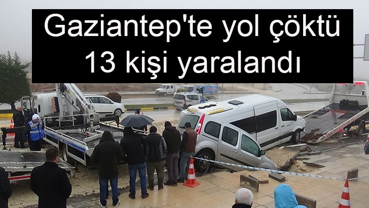 <p> Gaziantep'in Şehitkamil ilçesinde yolda çökme meydana geldi. Olayda 2 araç çukura düşerken 13 kişi hafif şekilde yaralandı. </p>