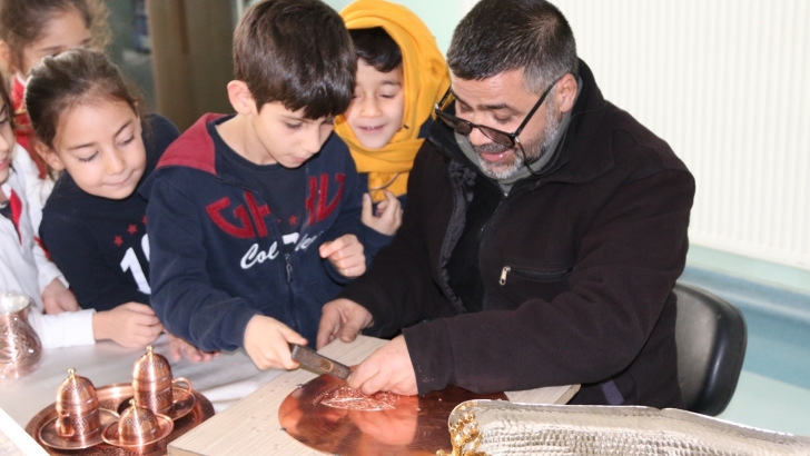 <p>Gaziantep Kolej Vakfı Özel Okulları geleneksel el sanatlarının tanıtımı, yok olmaya yüz tutmuş mesleklerin yeni nesillere aktarılması, etnografik zenginliklerimizin tanıtımı amacıyla düzenlediği el sanatlarımız konulu atölyelerde el sanatları ustalarını ağırladı. Gaziantep Kolej Vakfı Özel İlkokulu’nda düzenlenen el sanatları atölyeleri kapsamında kutnu kumaş dokumacılığını öğrencilere anlatmak üzere Kutnu Ustası Abdülkadir Mekki, bakır işlemenin detayları için Bakır Ustası Mesut Keklik ve cam işleme sanatının tanıtımı için de Harun Veysel Gümüş’ü ağırladı.<br />El sanatları atölye çalışmalarını değerlendiren Gaziantep Kolej Vakfı Özel İlkokul Müdürü Uğur Özeren, “Gaziantep için çok önemli olan bakır işleme ve kutnu kumaşı gibi el emeği, göz nuru eserlerin okulumuzda sergilenmesinden mutluluk duyuyorum. Öğrencilerimiz yaşadıkları Gazi şehrimizin kültürü ve tarihi ile ilgili bilgi aldılar. Eğitim-öğretim ile ilerde Gazi şehrimizin gelişimine katkı verecek öğrencilerimiz için değerli bir çalışma oldu. Bu sergilerin açılışında emeği geçen değerli ustalarımıza ve emeği geçen öğretmenlerimize teşekkür ediyorum” dedi.<br />El sanatları ustaları öğrencilere mesleklerinin ince ayrıntılarını gösterirken birçok öğrenciyle uygulamalı çalışmalarda yaptılar. Öğrencilerin büyük ilgi gösterdiği atölye çalışmaları hafta boyunca devam edeceği de açıklandı.</p>