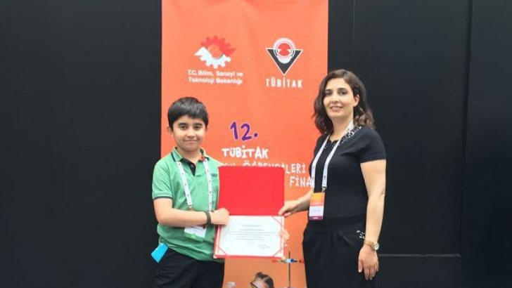 <p>TÜBİTAK tarafından düzenlenen 12. Ortaokul Öğrencileri Araştırma Projeleri Yarışmasına katılan Gaziantep Kolej Vakfı Özel Okulları beşinci sınıf öğrencisi M. Aras Dilsiz Üleksit Katkılı Betonda Isı Yalıtımının Laboratuvar Ortamında Araştırılması konulu projesi ile teşvik ödülü<br />aldı.</p> <p>Gaziantep Kolej Vakfı Özel İlkokulu beşinci sınıf öğrencisi M. Aras DİLSİZ TÜBİTAK tarafından düzenlenen 12. Ortaokul Öğrencileri Araştırma Projeleri Yarışmasına katılarak ödül aldı. Proje Danışmanlığını Nilüfer Şimşek yaptığı değerlendirmede “Okulumuz 5/E sınıfı öğrencilerinden<br />M. Aras DİLSİZ TÜBİTAK tarafından düzenlenen 12. Ortaokul Öğrencileri Araştırma Projeleri Yarışmasına Türkiye katılarak ödül almıştır. 12 bölgeden seçilerek gelen 8 farklı branşta 160 projenin katıldığı ve Kayseri’de finali gerçekleştirilen yarışmanın Kimya branşına 17 kimya<br />projesi yarışmış olup öğrencimiz M. Aras DİLSİZ “Üleksit Katkılı Betonda Isı Yalıtımının Laboratuvar Ortamında Araştırılması” konulu projesi ile teşvik ödülü almaya hak kazanmıştır. Öğrencimizi başarısından dolayı kutluyorum” dedi.</p>