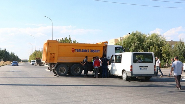 <p> Gaziantep’te işçi servisi ile hafriyat kamyonunun çarpışması sonucu meydana gelen kazada 5 kişi yaralandı. </p>