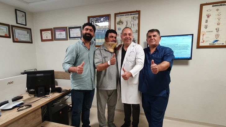 <p>Başarılı operasyonlara imza atan Beyin, Sinir ve Omurilik Cerrahisi Uzmanı Op. Dr. Tevfik Güç de, “Sol kolda güç kaybı, el ve kollarda kasılma, omurilikte bası yapan disk nedeni ile dengesiz ve aksayarak yürüyüş problemleri olan hastamızdan boyun MR istedik. Hastamızın boyun MR’ında omurilikte hasar görmüş alanların olduğunu tespit edince ameliyata karar verdik. Boyun fıtığı tarafından sıkıştırılan omurilik rahatlatıldı. Hastamız artık aksamadan ve dengesi bozulmadan yürüyebiliyor. Sağlıklı bir şekilde taburcu ederek ülkesine gönderiyoruz” dedi. </p>