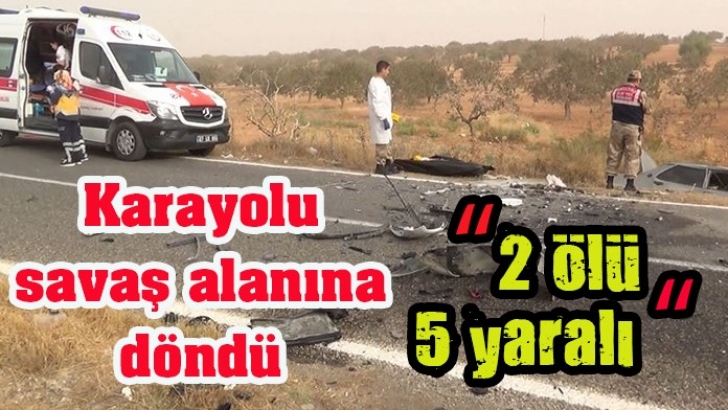 <p>Gaziantep'in Nizip ilçesinde iki otomobilin çarpışması sonucu yaşanan kazada 2 öldü, 5 kişi yaralandı. Kaza sonrası karayolu adeta savaş alanına döndü. </p>