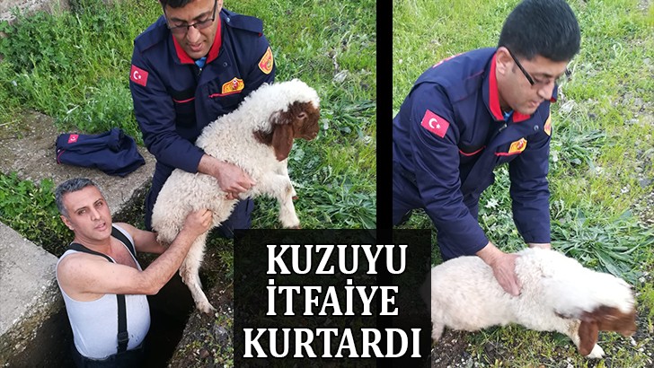Kuyuya düşen kuzuyu itfaiye kurtardı