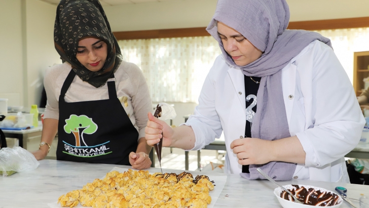 <p>Şehitkamil Belediyesi Hanımlar Lokalinde açılan Temel Pastacılık Kursu, kadınların lezzet durağı olmaya devam ediyor. Periyodik olarak açılan kurslardan yararlanan kadınlar, pasta yapımında önemli püf noktaları, eğitmenlerden uygulamalı olarak öğreniyor. Bir yandan lezzetli pasta yapımını öğrenen kadınlar diğer yandan da kurs ortamındaki arkadaşlıklarıyla stresten ve sıkıntıdan uzak keyifli anlar yaşama olanağı buluyor. İşletme sahibi olmaları için gereken bilgi ve beceriyi kazandırmak amacıyla verilen eğitimler sonunda isteyen kadınlar, kendi işletmelerini açarak ekonomik özgürlüklerini elde edebiliyor. İşletme açmayan kadınlar ise aile üyeleri ve misafirleri için birbirinden lezzetli pasta çeşitleri hazırlayabiliyor.</p>