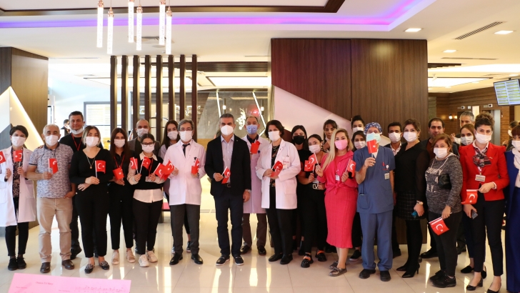 <p style="font-weight: 400; text-align: justify;">Hastanenin lobi fuaye alanında hastane yönetimi, çalışanlar ve hastalarla birlikte coşkuyla kutlanan 29 Ekim Cumhuriyet Bayramı etkinliğine hastalar ve çalışanlar oldukça ilgi gösterdi. Jazz etkinliğinde çalışanlar şarkılarla ve marşlarla Cumhuriyet Bayramı’nı kutladılar. Cumhuriyet Bayramı nedeniyle tüm hastalara bayrak ve ay yıldızlı balon dağıtımı gerçekleştirildi.</p> <p style="font-weight: 400; text-align: justify;">Medical Park Gaziantep Hastanesi Genel Koordinatörü Hayrullah Kubba 29 Ekim Cumhuriyet Bayramı ile ilgili yaptığı açıklamada ‘’Cumhuriyetimizin ilanının 98. yılında başta Büyük Önderimiz Gazi Mustafa Kemal Atatürk’ü, aziz şehitlerimizi ve gazilerimizi saygı ve rahmetle anıyor, Cumhuriyet Bayramınızı en içten dileklerimizle kutluyoruz.’’ ifadesine yer verdi.</p>