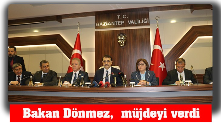 <p>Gaziantep'te açıklamalarda bulunan Enerji ve Tabi Kaynaklar Bakanı Fatih Dönmez, Türkiye genelinde 12 yılda döşenen doğal gaz hattının 140 bin kilometre olduğunu belirterek, "Dünyanın çevresi ekvatordan 40 bin kilometre. Biz neredeyse 12 yılda dünyanın çevresinde 3.5 kat tur atmışız ve kazarak tur atmışız" dedi. <br />Bakan Fatih Dönmez, Gaziantep Valiliğini ziyaretinde Vali Davut Gül, Gaziantep Büyükşehir Belediye Başkanı Fatma Şahin, MHP Gaziantep Milletvekili Muhittin Taşdoğan, Ak Parti İl Başkanı Eyup Özkeçeci, sanayici, işadamı ve bürokratlarla bir araya geldi. Bakan Dönmez, burada müjdeleri art arda sıraladı. </p>