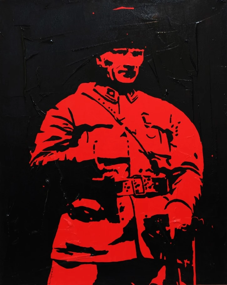 “Kuvayi Milliye Destanı ile oluşturduğum Paşalar Serisi, savaşlardan yorgun düşen bir ulusun, belge ve resimlerinden oluşan kanlı dirilişinin öyküsüdür. Siyah-beyaz bir fotoğraf estetiği ile işlenen yapıt serisine dahil olan tek rengin şiddetli bir kırmızı olması üzerinde durduk. Bu noktada, kırmızının siyah ve beyaz ile yarattığı kontrasta bağlı grafik etkinin dışında sembolik anlamlar taşıdığı vurgulanabilir.