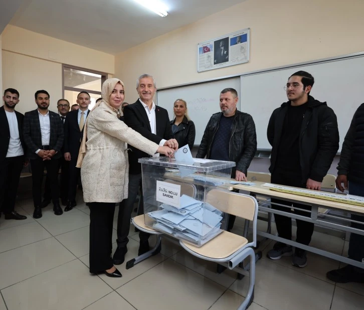 Binbaşı Dündar Taşer Mesleki ve Teknik Anadolu Lisesi'ne ailesi ile birlikte gelen Şahinbey Belediye Başkanı Mehmet Tahmazoğlu, oyunu kullandıktan sonra vatandaşlarla ve sandık görevlileri ile sohbet etti