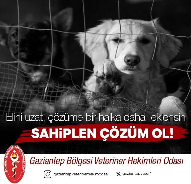Gaziantep Bölgesi Veteriner Hekimler Odası, ‘’Sahiplen Çözüm Ol’’ sloganıyla sokakta ve barınakta yaşayan evcil hayvanların sahiplenilmesi için kampanya başlattı. Oda Başkanı Meltem Peri, ‘’Hedefimiz en az bin evcil hayvanın sahiplendirmesidir. Gaziantep modeli ile bu sorunu çözebiliriz’’ dedi.