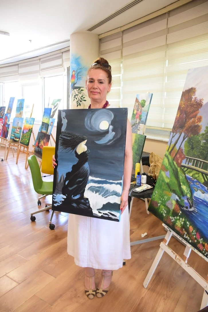 Şahinbey Belediyesi'ne bağlı Özgecan Hanımlar Kültür ve Spor Merkezi'nde resim kursuna katılan Suzan Doğan Yılmaz, depremin oluşturduğu korkuyu ve travmayı resim sanatı ile aşıyor.