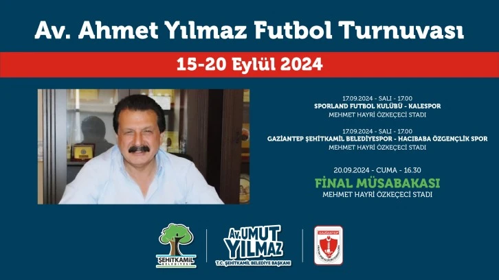 Şehitkamil Belediyesi, ilçenin ilk Belediye Başkanı merhum Av. Ahmet Yılmaz anısına düzenlediği futbol turnuvası ile sporseverleri bir araya getiriyor. Şehitkamil Belediye Başkanı Umut Yılmaz, turnuvaya tüm sporseverleri davet etti.