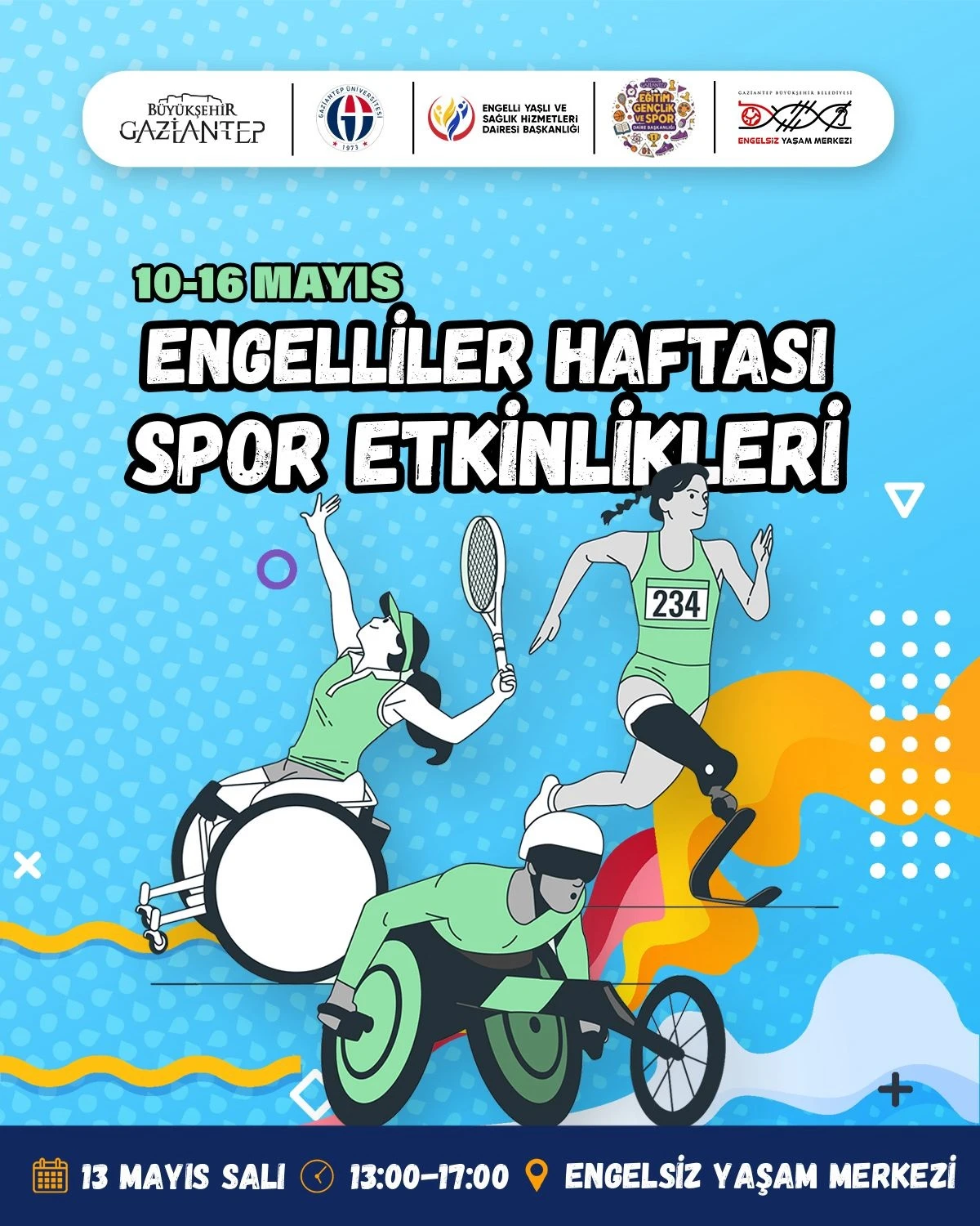 Gaziantep Büyükşehir Belediyesi, 10-16 Mayıs Engelliler Haftası kapsamında spor şenliği düzenledi. Öğrenciler goalball, bowling, floorcurling, TS basketbol, dart, hemsball, mini basket ve parkur oyunlarıyla eğlenceli ve farkındalık dolu etkinliklere katıldı.