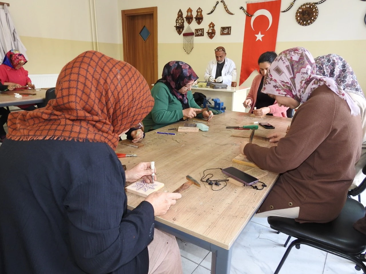 Şahinbey Belediyesi’ne bağlı Hasan Celal Güzel Gençlik Merkezi’nde sedef kakma kursuna katılan kadınlar, hünerli elleriyle birbirinden güzel ahşap işlemeler yapıyor.