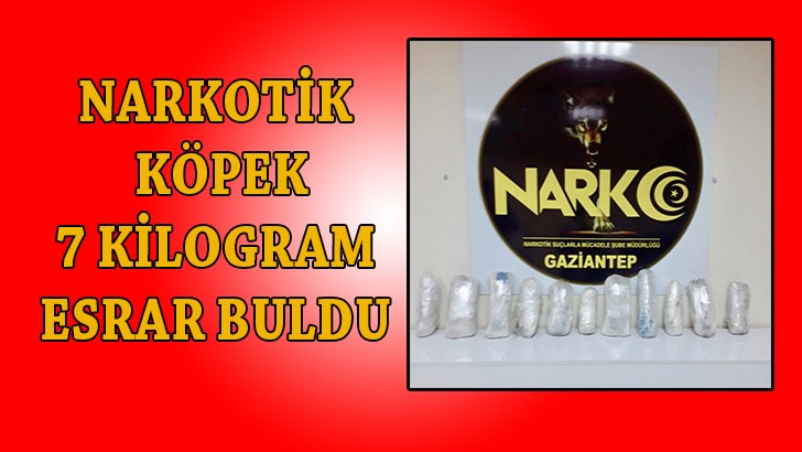 <p>Gaziantep Emniyet Müdürlüğü, Narkotik Suçlarla Mücadele Şube Müdürlüğü Ekipleri, Gaziantep’e doğu illerinden yüklü miktarda uyuşturucu madde getireceği tespit edilen bir araç, Gaziantep otoban doğu gişeleri üzerinde durdurdu. Ekipler, Narkotik dedektör köpeği aracılığı ile araçta yapılan aramada, 6 paket halinde zulalanmış 7 kilogram esrar maddesi ele geçirdi. <br />Olayla ilgili gözaltına alınan 1 şüpheli şahsın yasal işlemleri devam ediyor. </p>