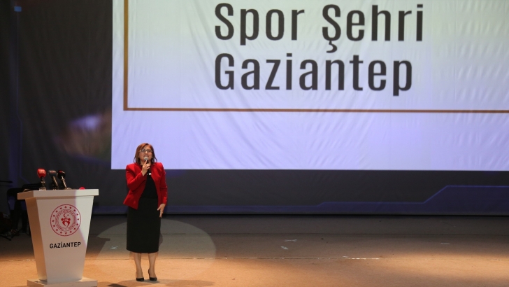 <p style="font-weight: 400;">Gaziantep Büyükşehir Belediye Başkanı Fatma Şahin de “Spor Şehri Gaziantep” ana başlığında hazırlanan sunumla il genelinde hayata geçirilecek olan spor tesislerine yönelik yatırımları anlattı.</p>