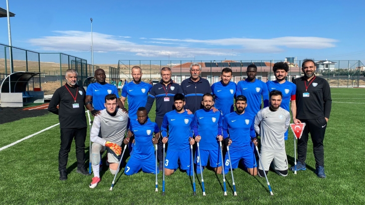 <p style="font-weight: 400; text-align: justify;">İçeride ve dışarıda aldığı farklı galibiyetlerle ligde iyi bir çıkış yakalayan Şahinbey Belediye Gençlik ve Spor Kulübü Ampute Futbol Takımı, bu çıkışını Konya deplasmanında da sürdürerek rakibini 10-1 mağlup edip 21 puanla liderlik koltuğuna oturdu. İlk yarısı 4-0 biten karşılaşmada mavi beyazlı takım ikinci yarıda da rakibine gol olup yağarak karşılaşmayı 10-1 tamamladı.</p>