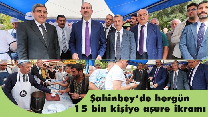 <p>Şahinbey Belediye Başkanı Mehmet Tahmazoğlu, Muharrem Ayı nedeniyle, Adalet Bakanı Abdulhamit Gül, AK Parti Gaziantep Milletvekili Mehmet Sait Kirazoğlu, AK Parti Gaziantep İl Başkanı Eyup Özkeçeci, AK Parti Gaziantep Milletvekili Nejat Koçer, AK Parti Şahinbey İlçe Başkanı Av. Hasan Teke ve AK Parti Şahinbey İlçe Kadın Kolları Başkanı ile de Almacı Pazarı’nda vatandaşlara aşure ikramında bulundu. </p>